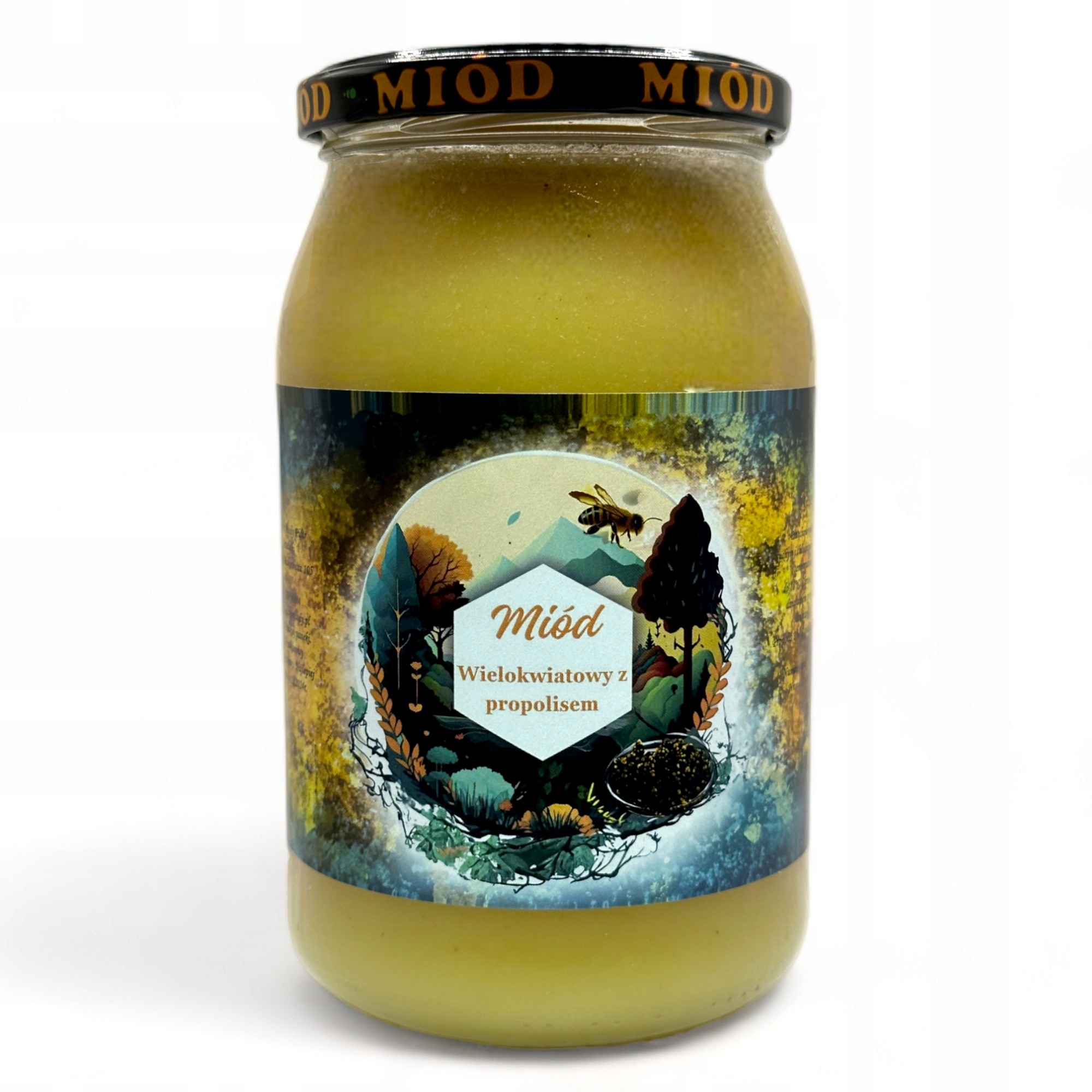 - 100% Naturalny Miód z Propolisem: Wyselekcjonowany miód wielokwiatowy z dodatkiem propolisu.