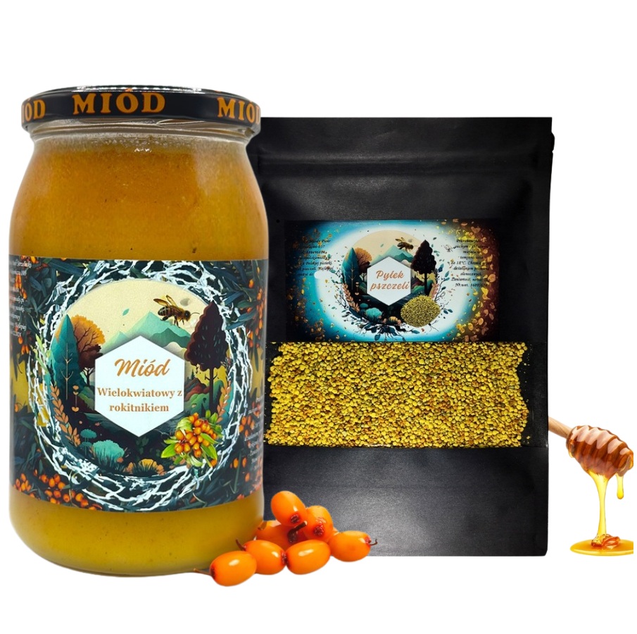 Super Miód z Rokitnikiem 1,2 kg + Pyłek Pszczeli 1 kg – Naturalna Siła dla Twojej Odporności! ??